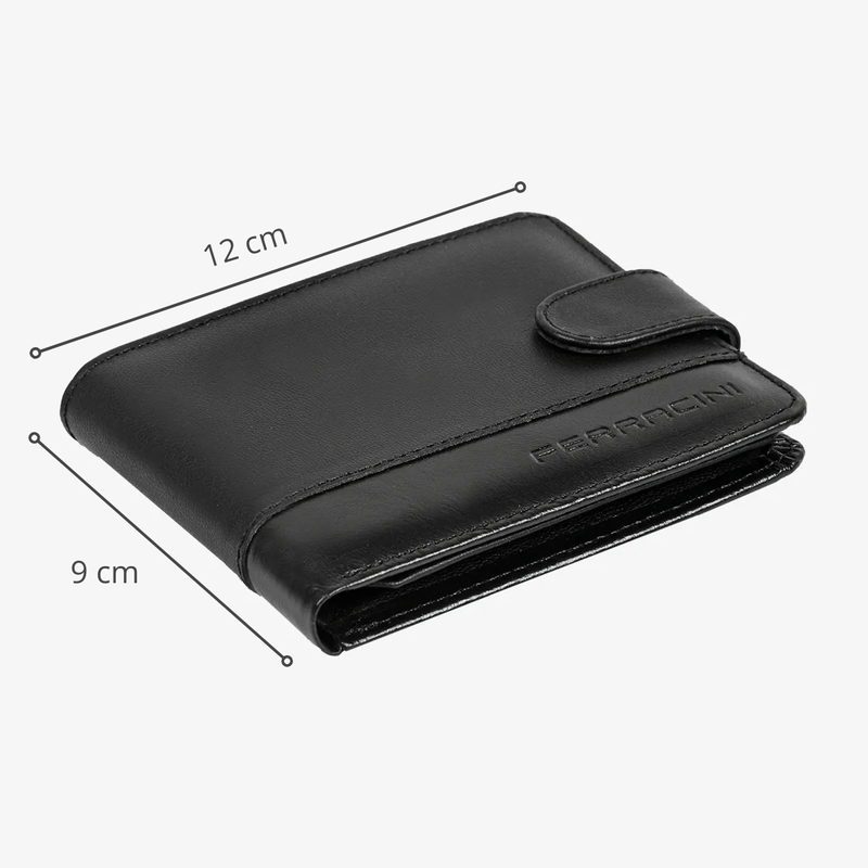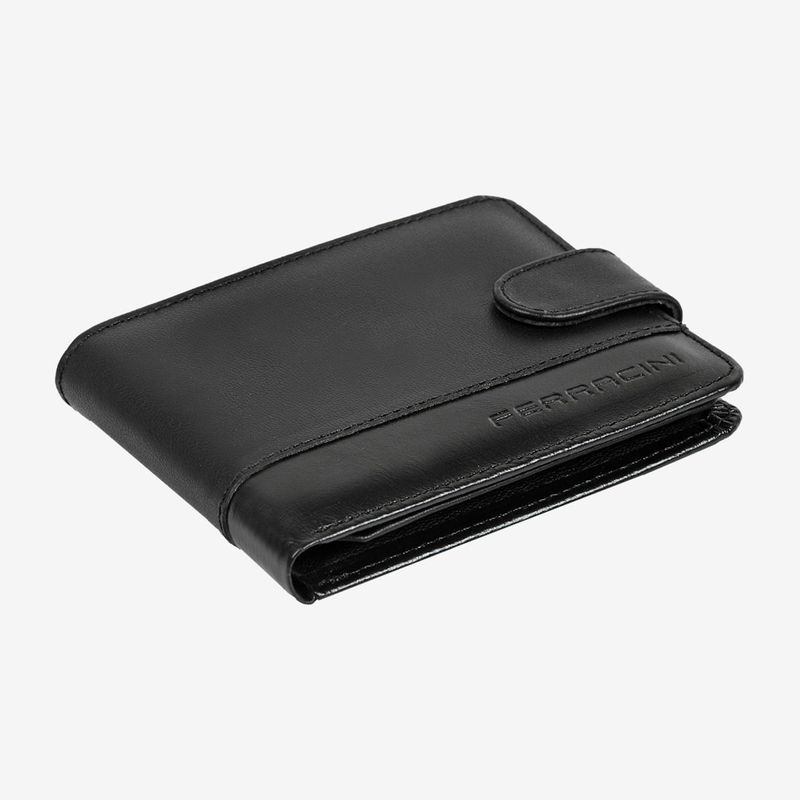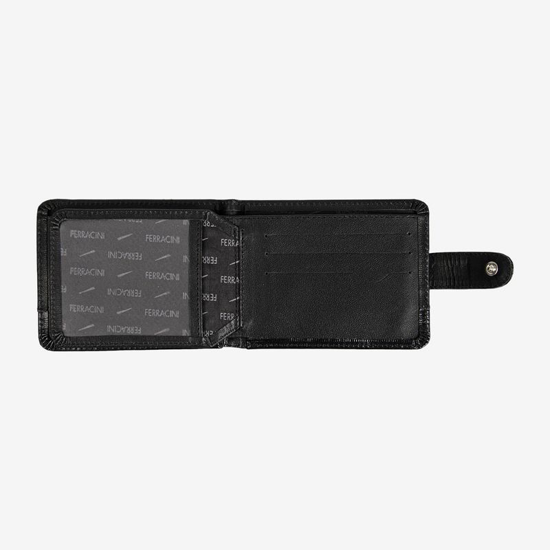Ela é fechada através de um botão e também conta com espaço exclusivo para CNH. Vale ressaltar que essa carteira preta é feita em material de
