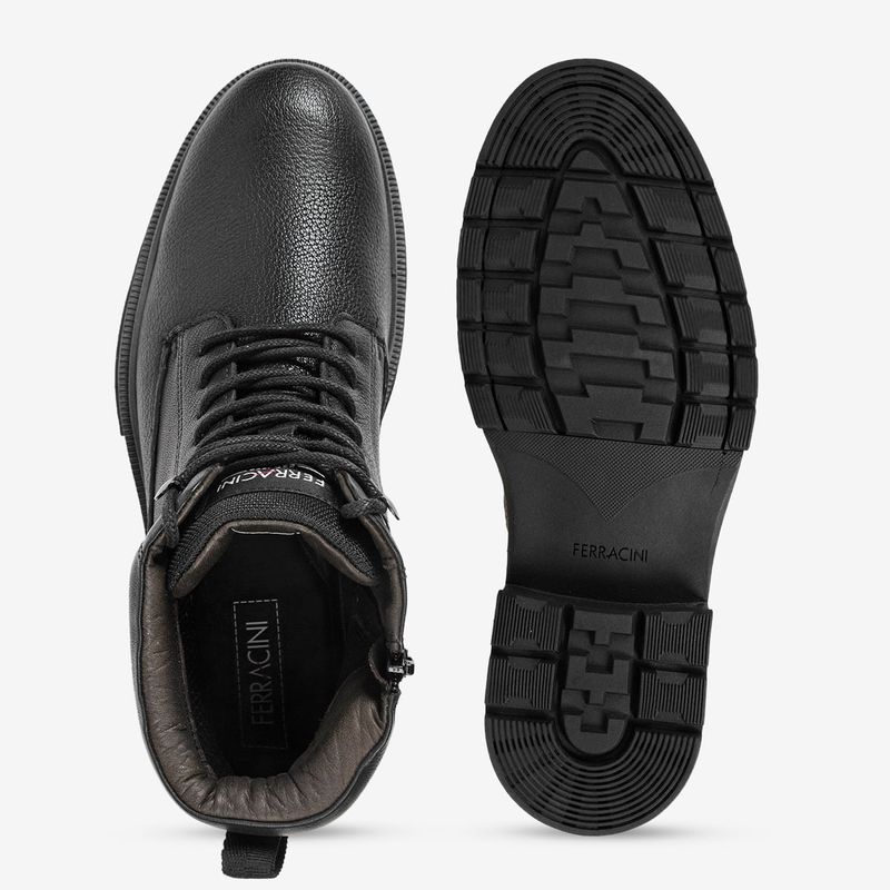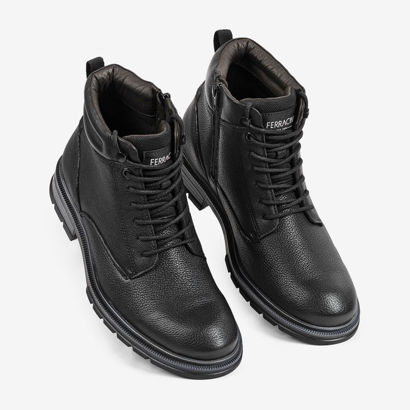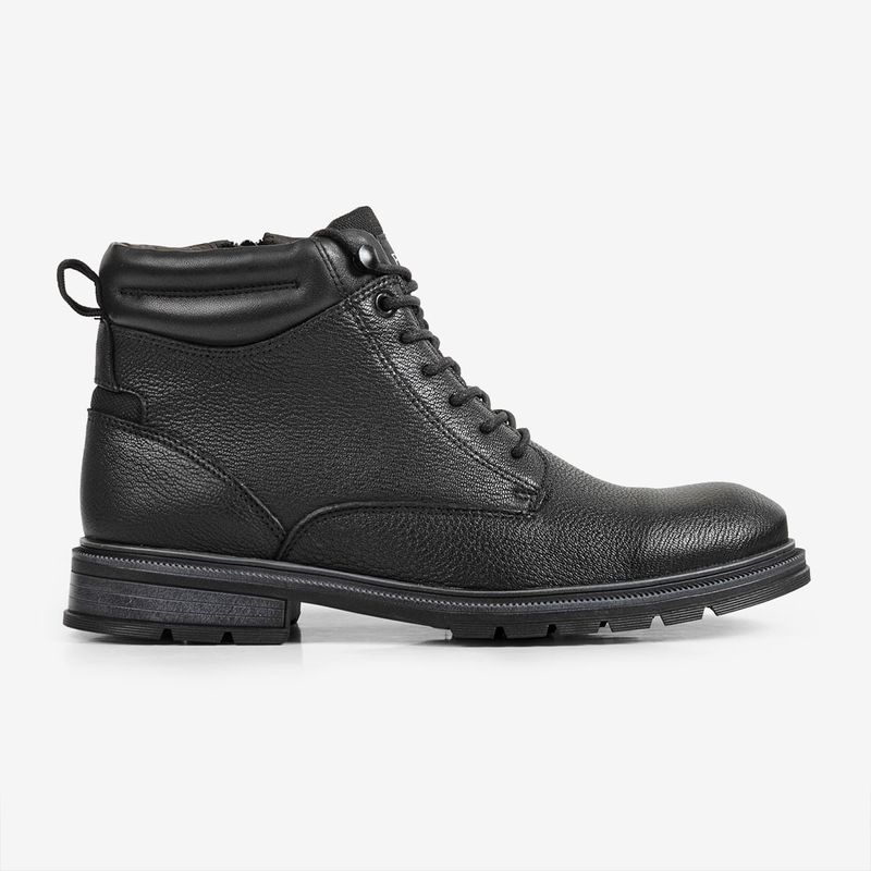Confeccionada em couro, possui calcanheira em alta frequência forrada em microfibra, oferecendo maciez e absorção de impacto. O solado em borracha garante aderência e segurança no caminhar, tornando a bota ideal para a rotina urbana.