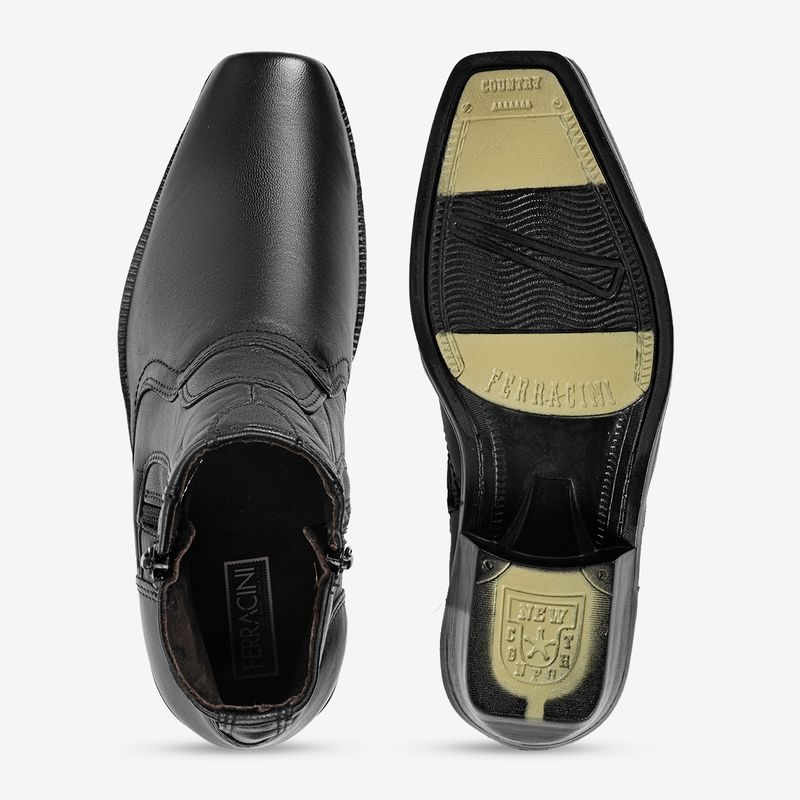A linha New Country oferece o que a de melhor no estilo country, um modelo clássico, com bico quadrado, cabedal todo em couro mestiço natural, forro em couro vacum e calcanheira de látex, que aliado ao solado PU proporciona leveza ao caminhar.