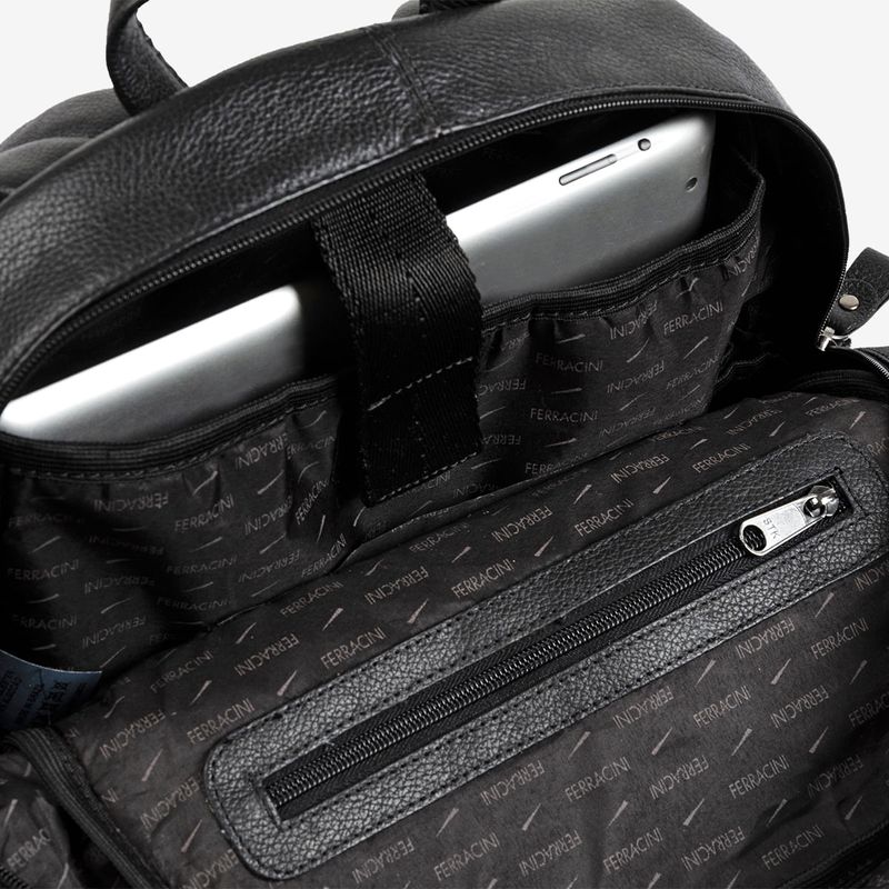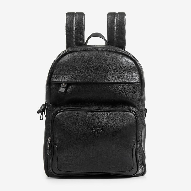 Essa é uma mochila preta que irá esbanjar estilo por onde você passar! Ela conta com compartimento para notebook de 14.5’’, é fabricado em couro legítimo, além de possuir bolsos internos e frontais.