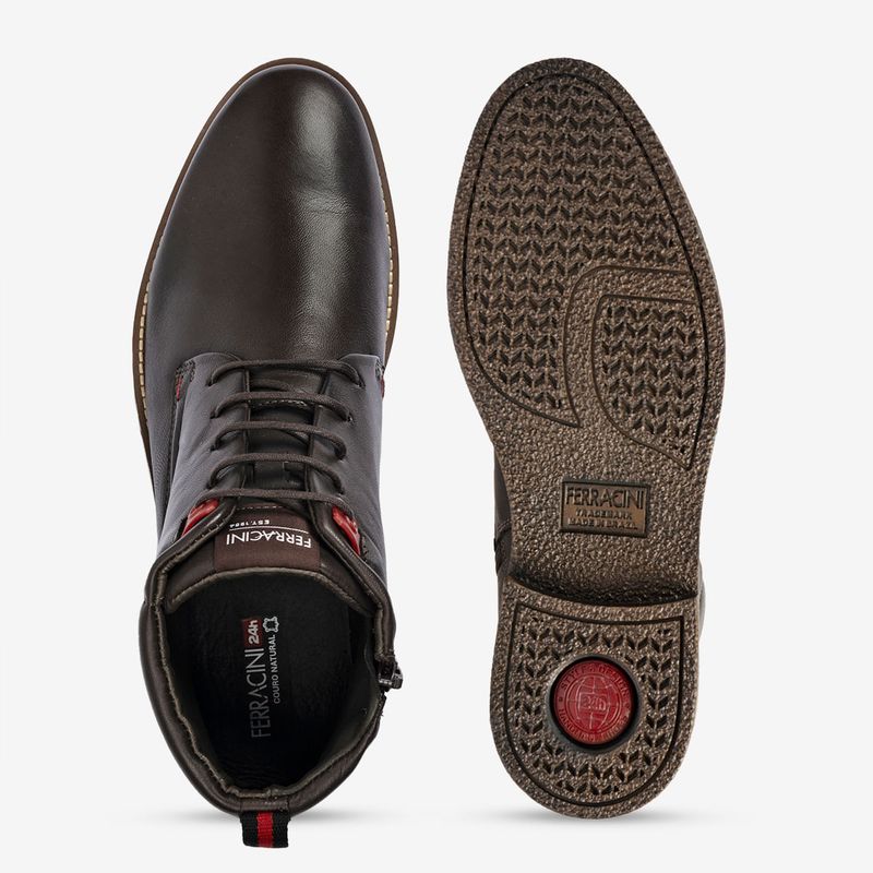 •Conforto: Palmilha em látex forrada em couro.