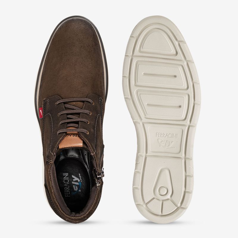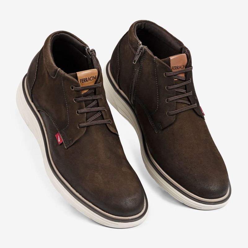 A linha Full Rustic combina design minimalista com uma estética rústica repaginada: couro premium no cabedal, forro em tecido e calcanheira de alta frequência com acabamento em microfibra. O solado em EVA com tecnologia Fly proporciona leveza máxima — ideal para quem está sempre em movimento.