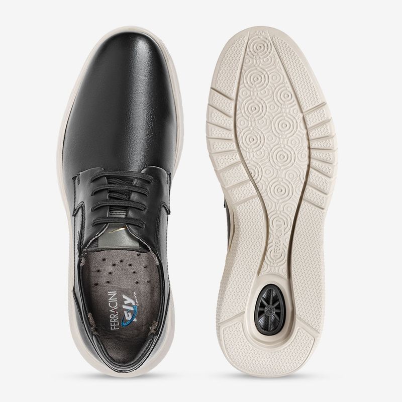 O Sapato Ferracini Masculino Preto Glover redefine o conceito de elegância e conforto para o homem contemporâneo. Confeccionado em couro nobre, esse modelo oferece maciez, durabilidade e um acabamento impecável, perfeito para eventos formais e o dia a dia profissional. Seu solado em EVA proporciona leveza e amortecimento a cada passo, reduzindo o impacto ao caminhar. Já a válvula DRY no solado garante uma melhor circulação de ar, mantendo os pés secos e confortáveis ao longo do dia. Além disso, o design moderno do sapato Ferracini conta com amarração elástica, proporcionando um encaixe perfeito e prático para quem busca praticidade sem perder o estilo. Com um visual sofisticado, esse sapato masculino em couro combina facilmente com trajes sociais ou looks casuais elegantes. Seja para reuniões de negócios ou ocasiões especiais, o Sapato Ferracini Preto Glover é sinônimo de conforto e estilo atemporal. Esse modelo é uma excelente escolha para quem busca um sapato preto que une versatilidade e requinte!