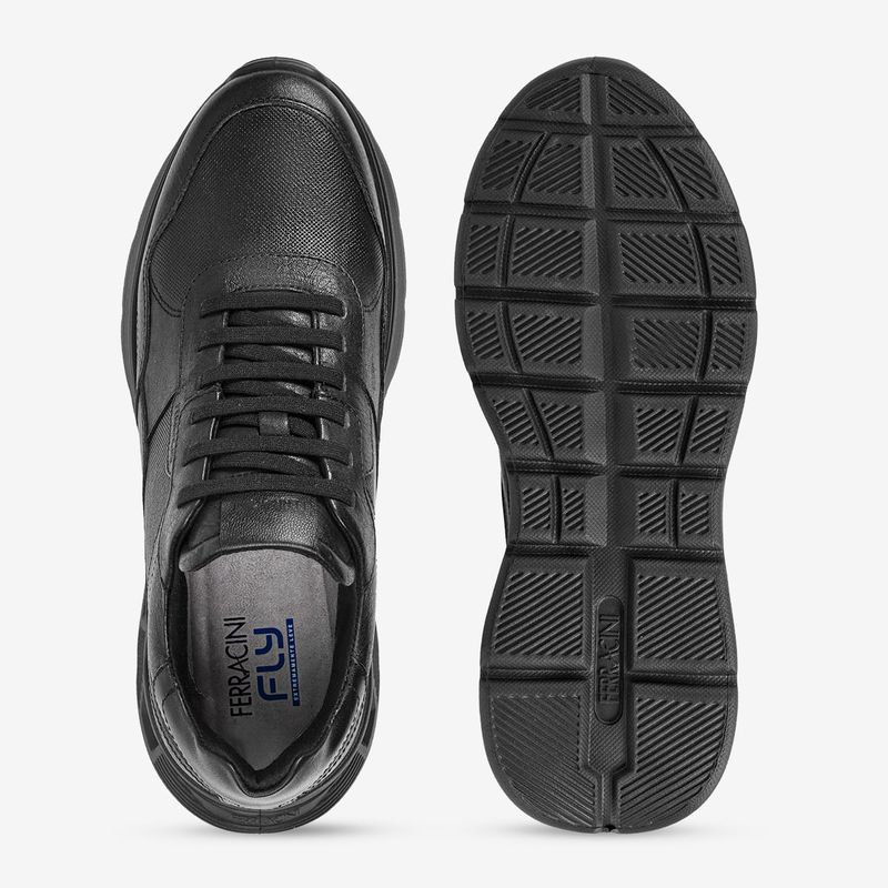 O Sneaker Speed Ferracini Preto com Solado Preto traz uma proposta mais sóbria e urbana, ideal para quem prefere um visual discreto, moderno e fácil de combinar. O design monocromático reforça a elegância do modelo sem abrir mão da inovação.